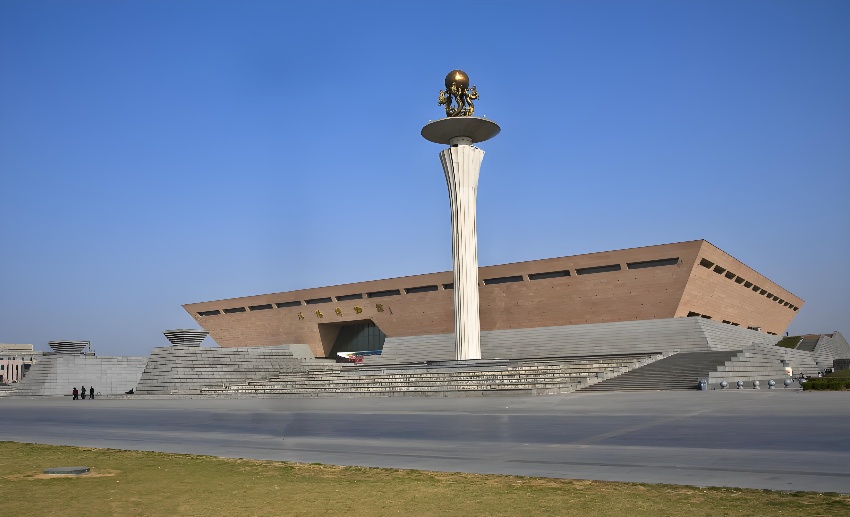 洛阳博物馆位于隋唐里坊区西北隅,占地300亩,建筑面积6.2万平方米,其中地上面积4.2万平方米,地下2万平方米,总投资3.5亿元。建筑外形如方鼎屹立,寓意“定鼎洛邑”“鼎立天下”。洛阳博物馆北临洛浦公园,南接植物园,环境优美,交通便利,是洛阳市的文化地标。