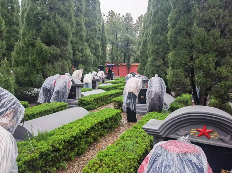 庄严肃穆的烈士陵园内,青松傲立,翠柏挺拔。绵绵细雨浸润着纪念碑文,仿佛在诉说着对烈士们的思念。上午九时整,全体人员列队整齐,在激昂奋进的国歌声中,开始了缅怀活动。肃立、默哀,大家以朴素的方式表达了对革命先烈的沉痛哀悼和无限追思。随后,依次缓步上前,瞻仰烈士纪念碑,深切缅怀先烈们的丰功伟绩和崇高精神。